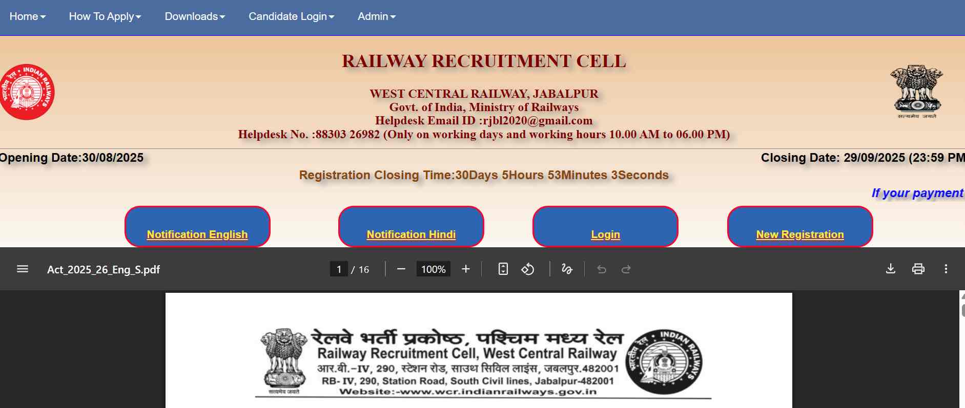 आधिकारिक वेबसाइट wcr.indianrailways.gov.in पर ऑनलाइन आवेदन कर सकते हैं।